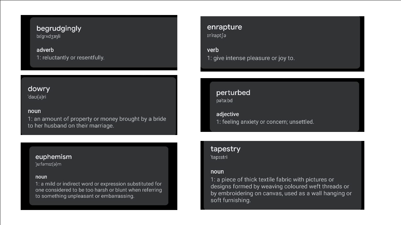 kosakata saya yang ada saja belum cukup. Setelah mencari arti katanya, saya